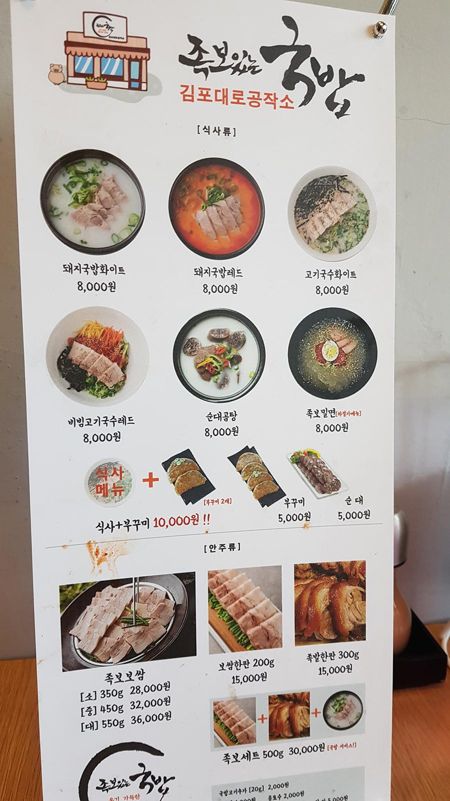 * 순대곰탕 : 8,000원 *족보밀면(하절기메뉴)