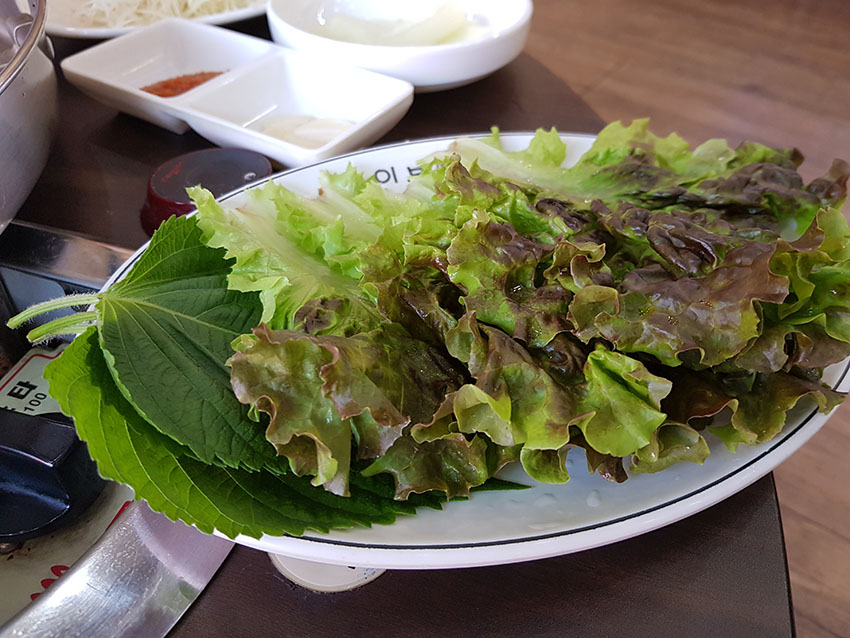 신선한 상추와 깻잎도 잘 씻어 나왔네요. 천연의 재료를 쓰는게 맞나 봅니다.